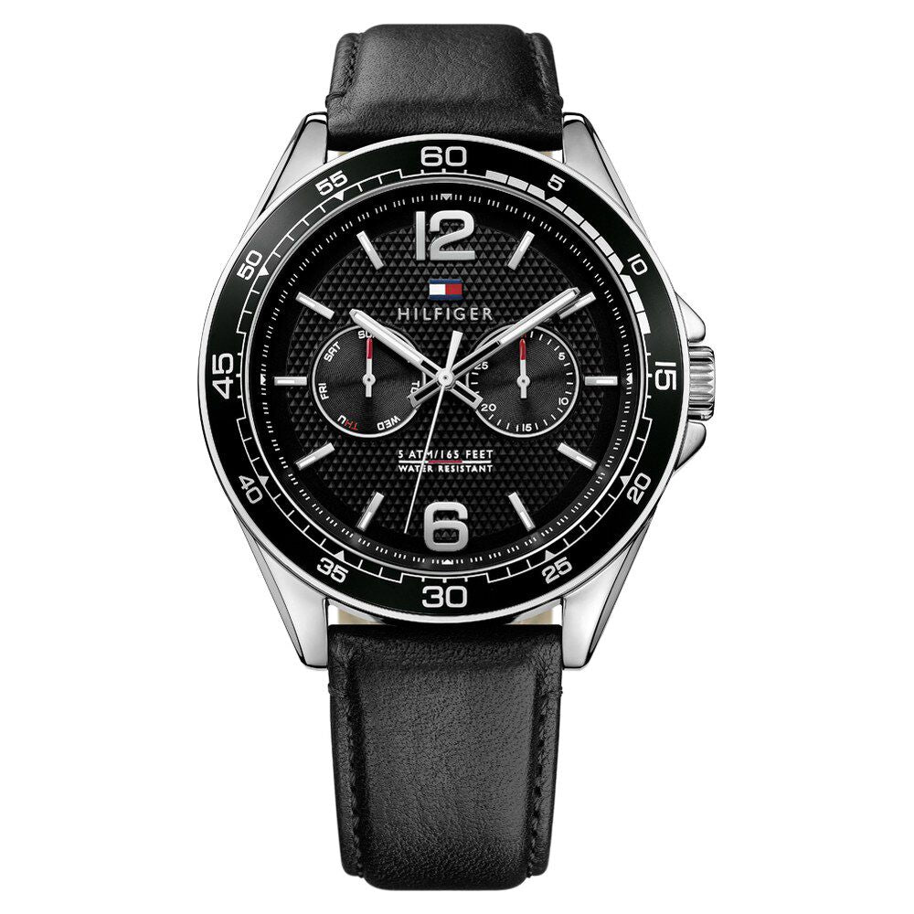 Tommy Hilfiger Quartz Multifunction Black Dial Leather Strap Watch for Men-TH1791369W