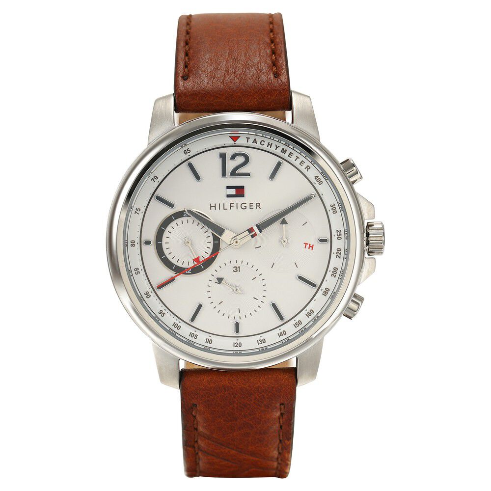 Tommy Hilfiger Quartz Multifunction Silver Dial Leather Strap Watch for Men-NCTH1791531W