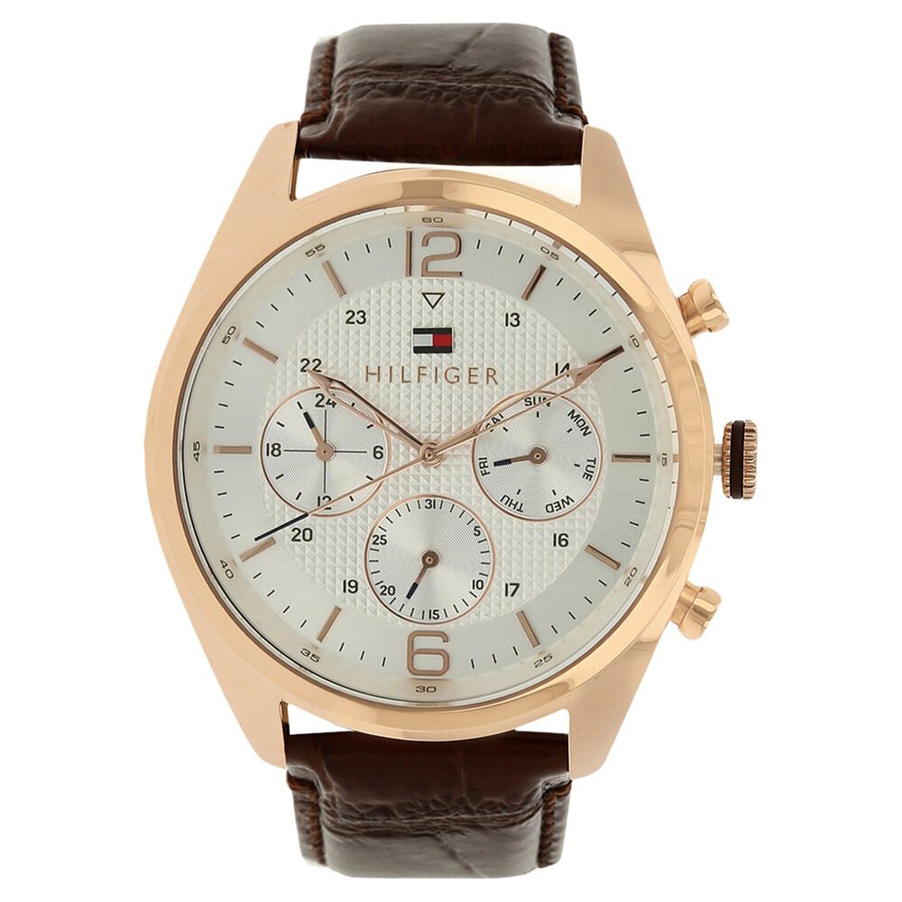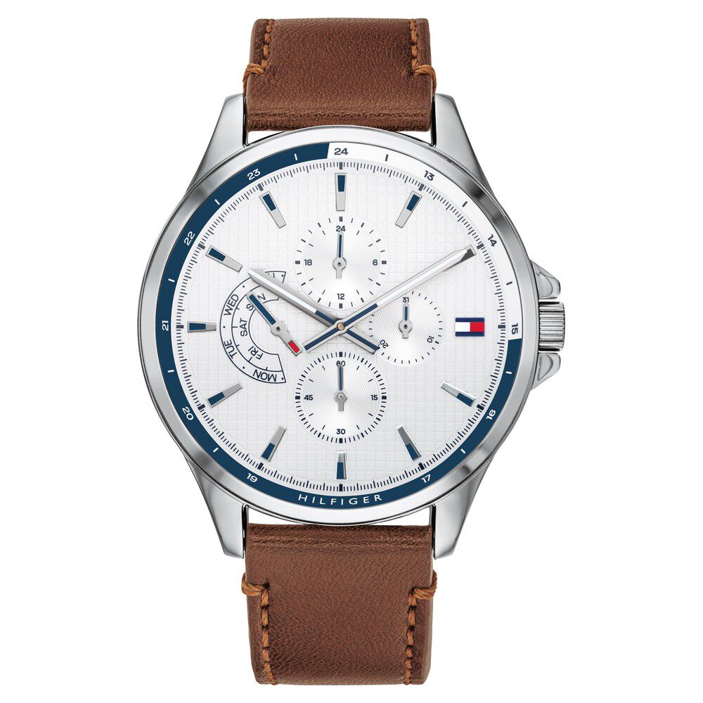 Tommy Hilfiger Multifunction Silver Round Dial Brown Leather Strap Watch For Men-NTTH1791884