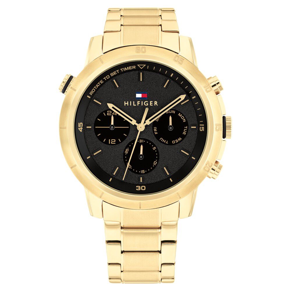 Tommy Hilfiger Multifunction Black Round Dial Golden Stainless Steel Strap Watch For Men-NTTH1792109