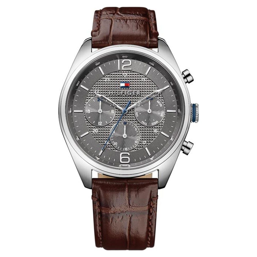 Tommy Hilfiger Quartz Multifunction Grey Dial Leather Strap Watch for Men-NCTH1710361