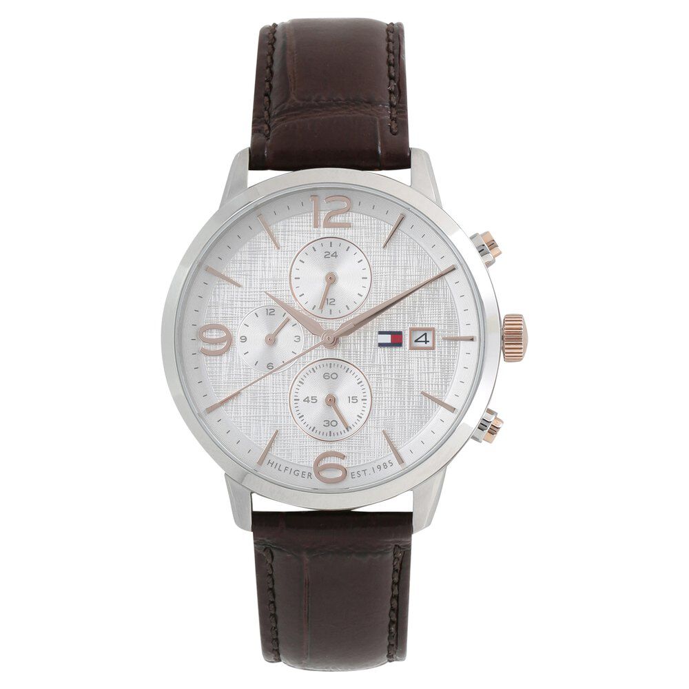 Tommy Hilfiger Multifunction Silver Dial Leather Strap Watch for Men-NTTH1791400