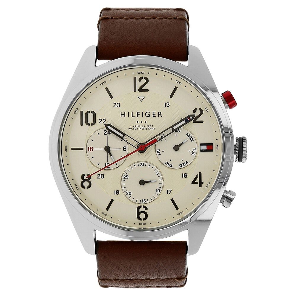 Tommy Hilfiger Quartz Multifunction Beige Dial Leather Strap Watch for Men-NCTH1791208W