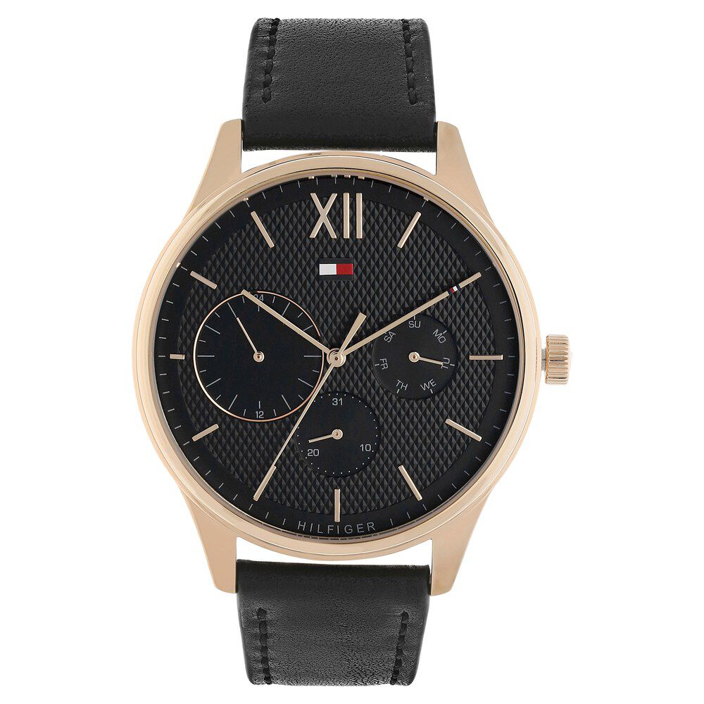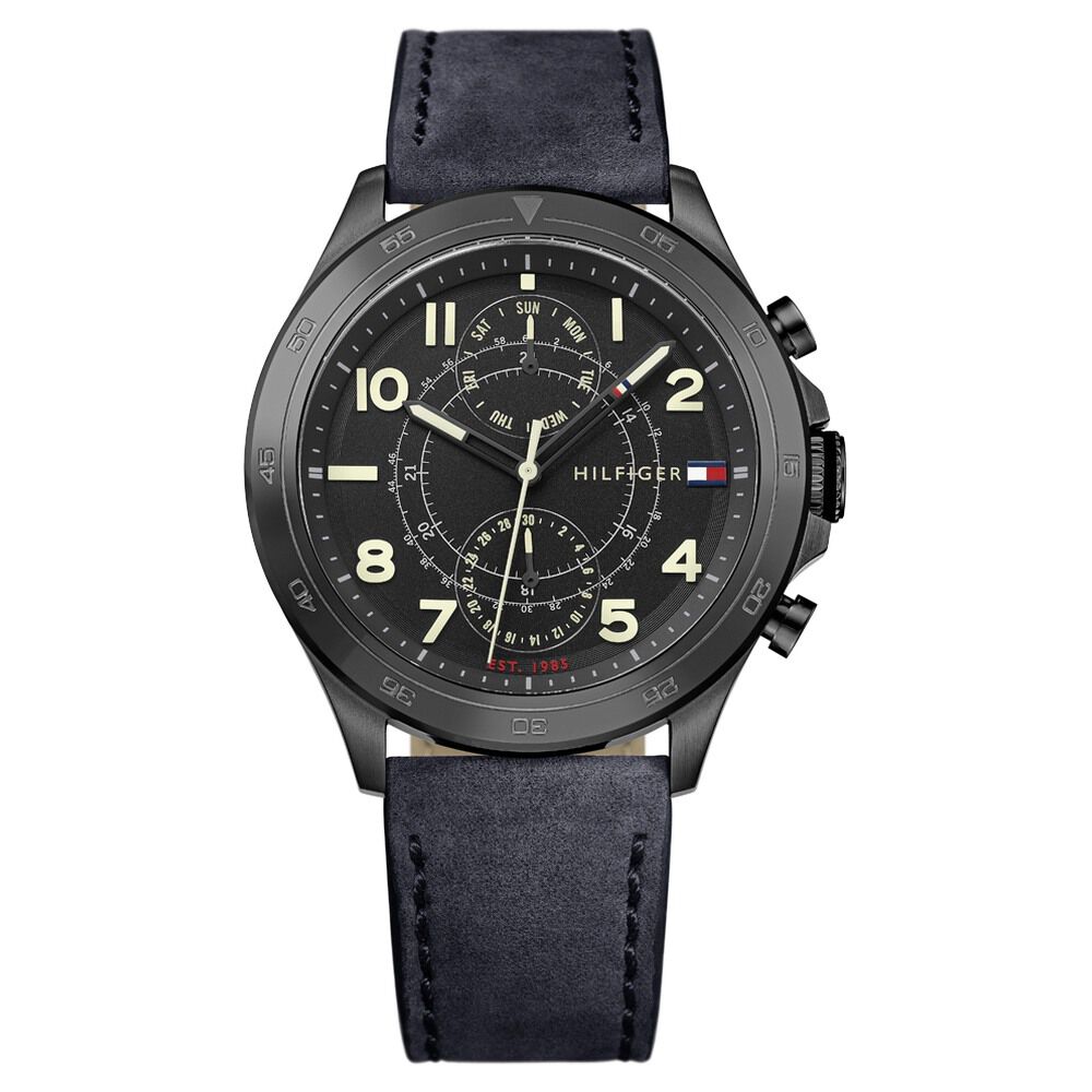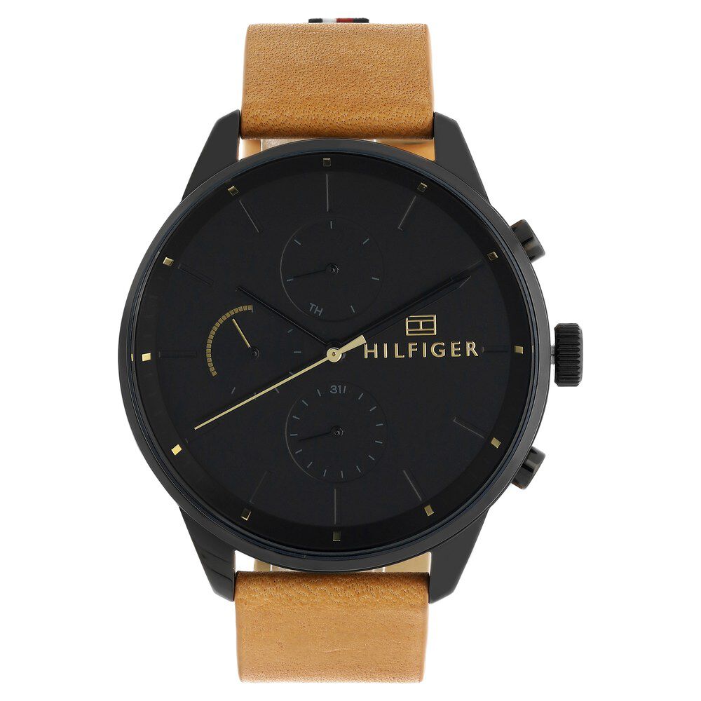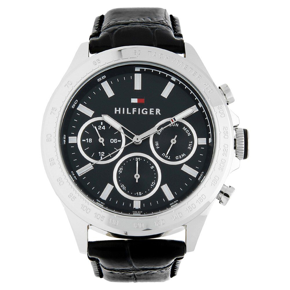 Tommy Hilfiger Quartz Multifunction Black Dial Leather Strap Watch for Men-TH1791419