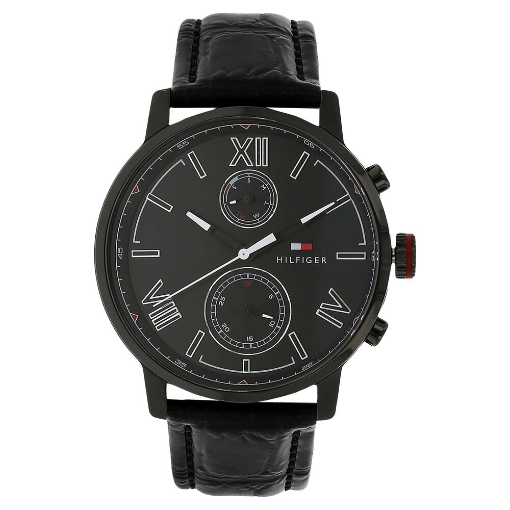 Tommy Hilfiger Quartz Multifunction Black Dial Leather Strap Watch for Men-NTH1791310