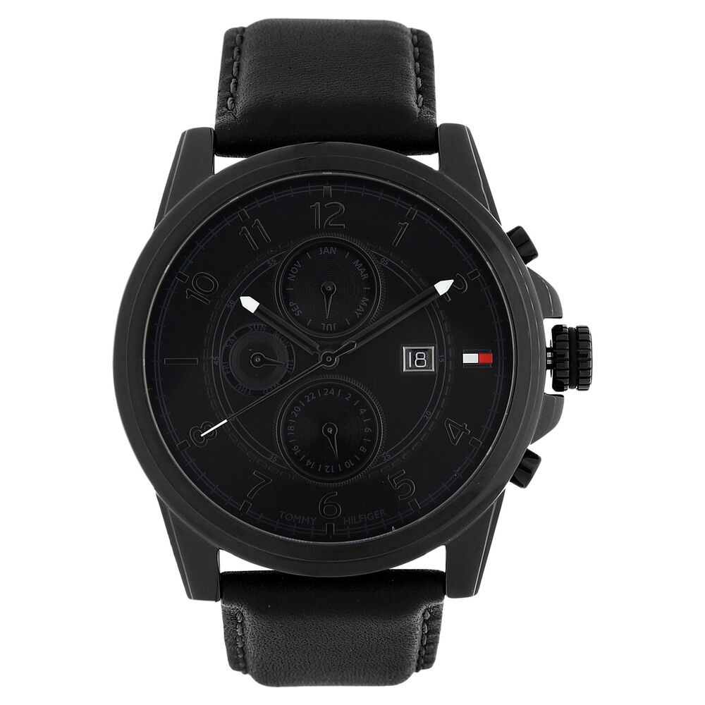 Tommy Hilfiger Multifunction Black Dial Black Leather Strap Watch for Men-NTTH1710556