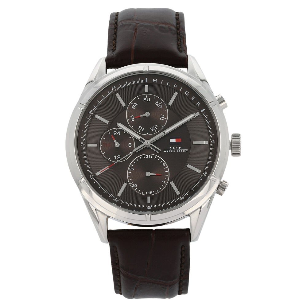 Tommy Hilfiger Quartz Analog with Day and Date Brown Dial Leather Strap Watch for Men-NCTH1791126