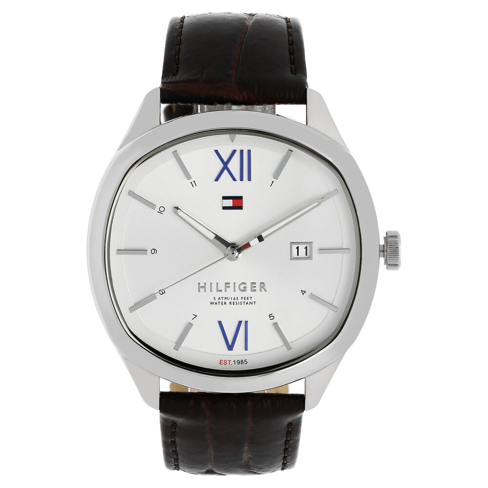 Tommy Hilfiger Quartz Analog with Day and Date White Dial Leather Strap Watch for Men-TH1791259W