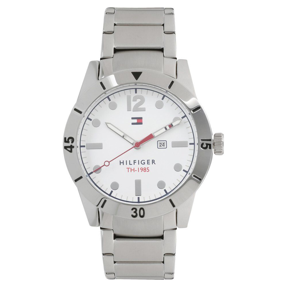 Tommy Hilfiger Quartz Analog with Day and Date White Dial Stainless Steel Strap Watch for Men-NCTH1791441