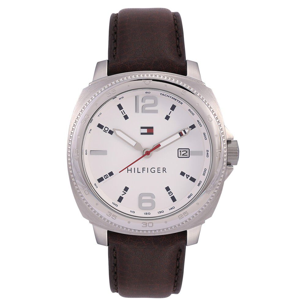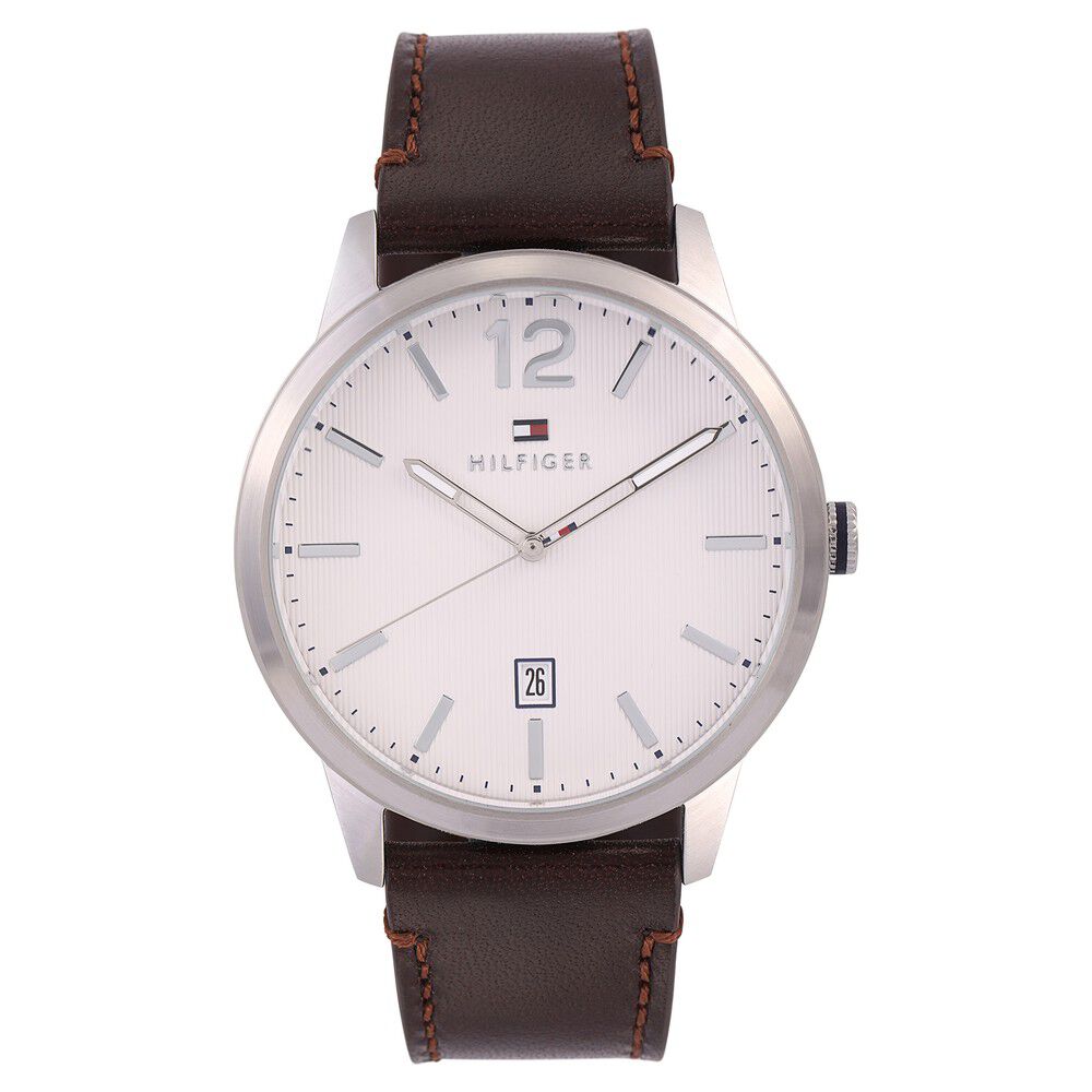 Tommy Hilfiger Quartz Analog with Date Silver Dial Leather Strap Watch for Men-NCTH1791495W