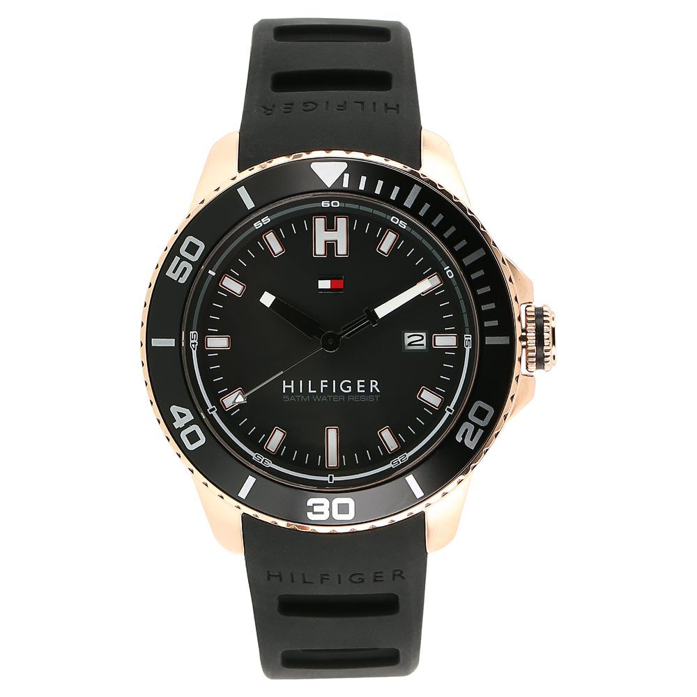 Tommy Hilfiger Quartz Analog with Day and Date Black Dial Silicone Strap Watch for Men-NCTH1791537