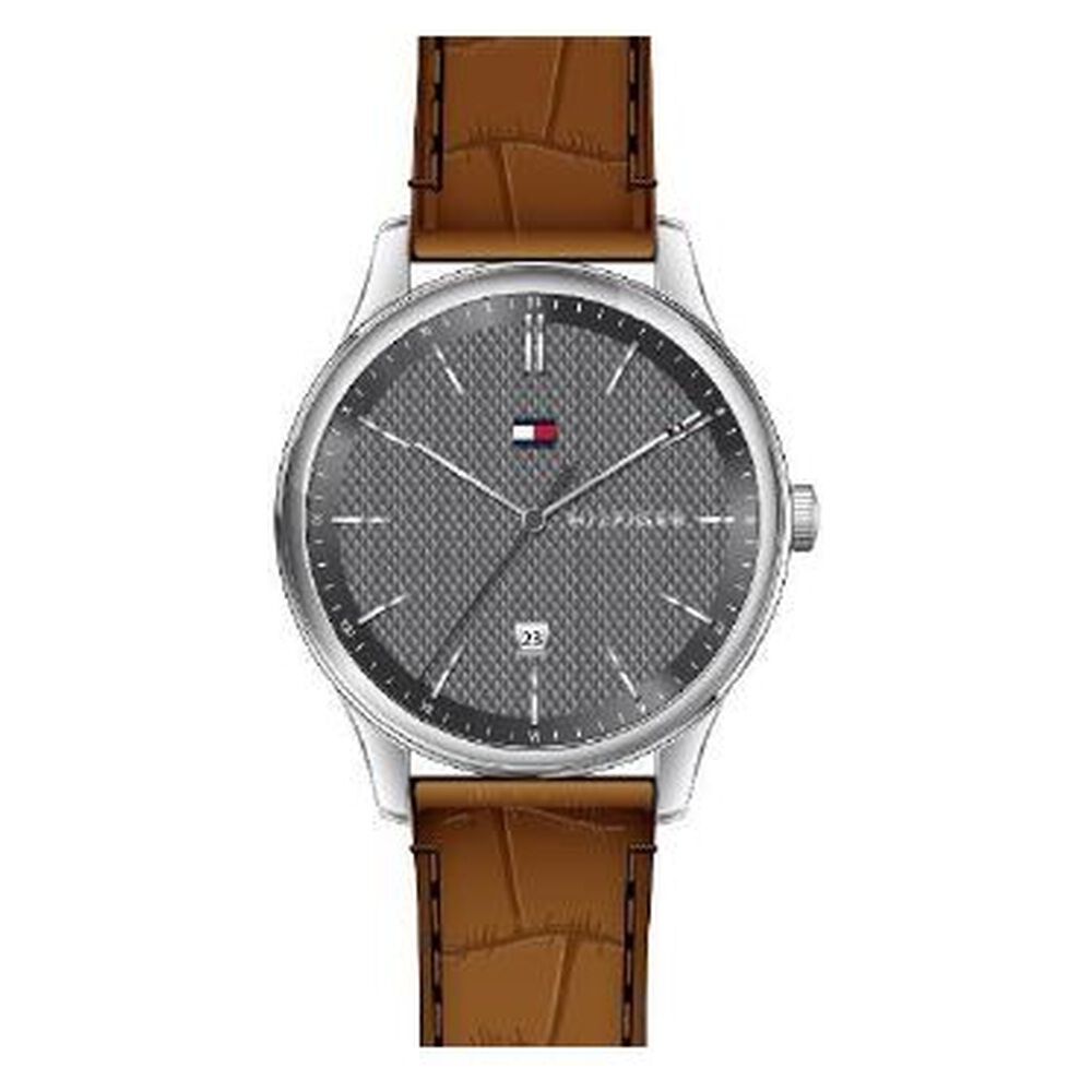 Tommy Hilfiger Quartz Analog with Date Grey Dial Leather Strap Watch for Men-NCTH1791492