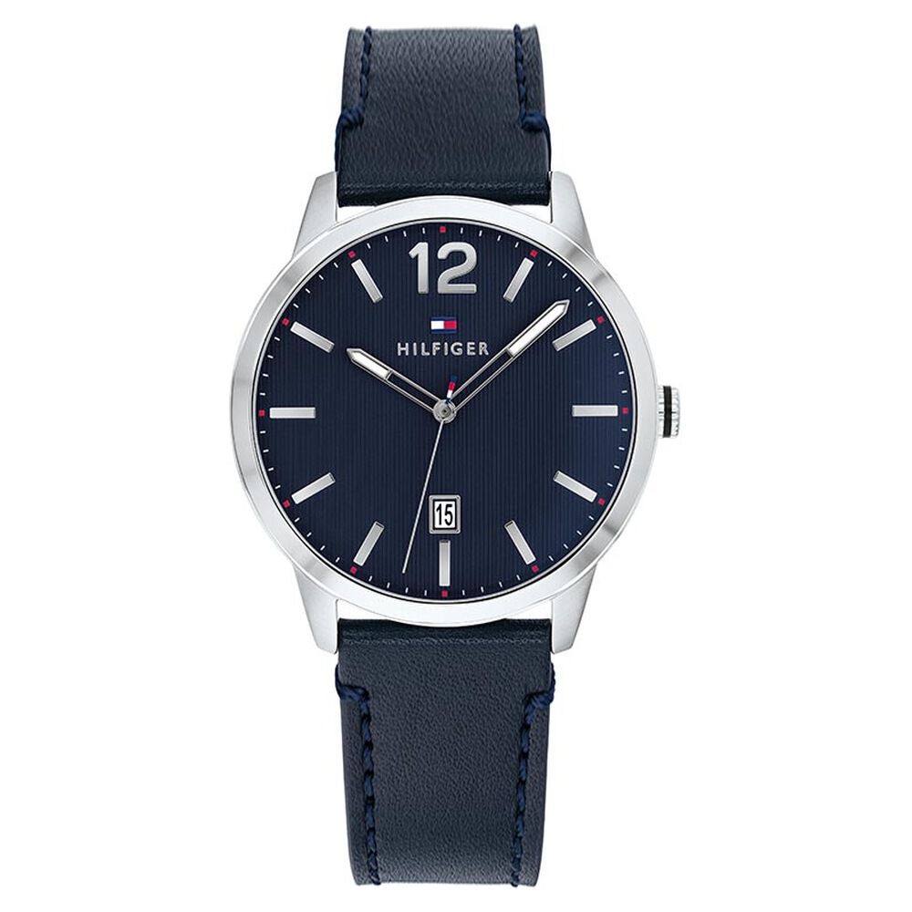 Tommy Hilfiger Quartz Analog with Date Blue Dial Leather Strap Watch for Men-NCTH1791493W