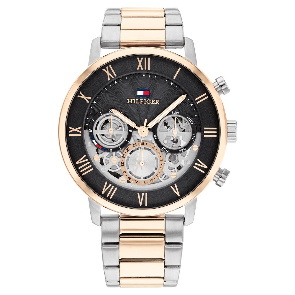 Tommy Hilfiger Automatic Black Dial Two Toned Color Stainless Steel Strap Watch For Men