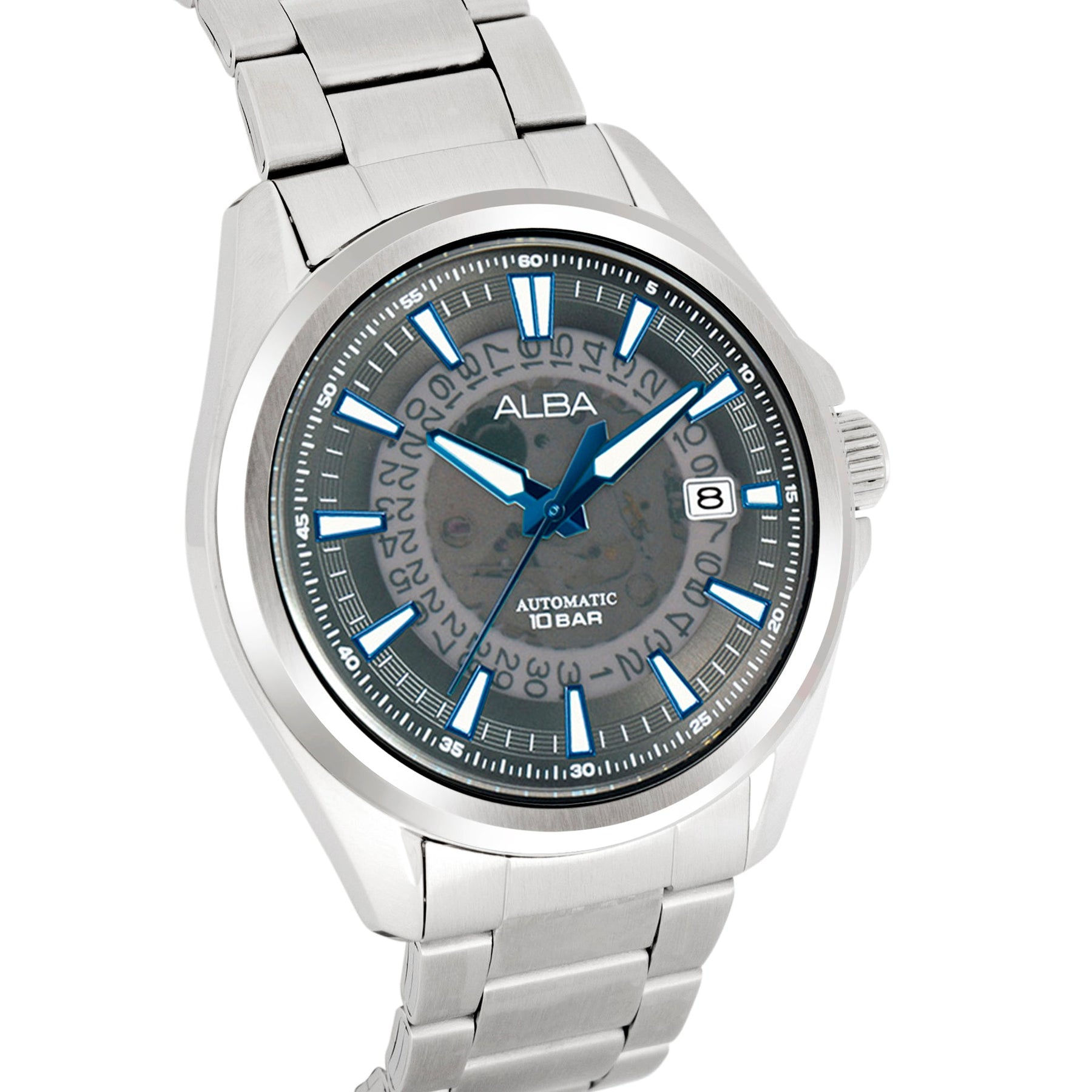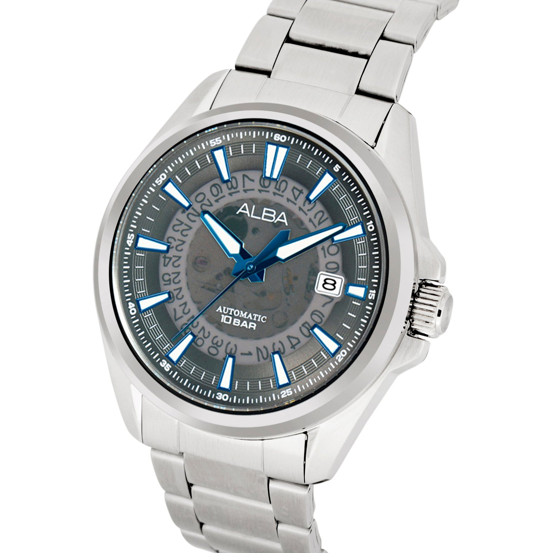 AU4033X1 Black Skeleton Dial Watch with Blue Hands