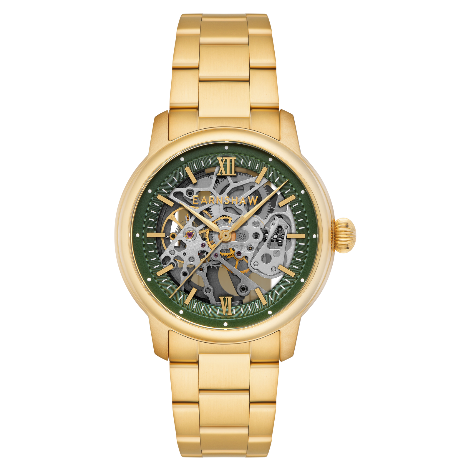 Earnshaw Cornwall Skeleton Automatic Gold Green