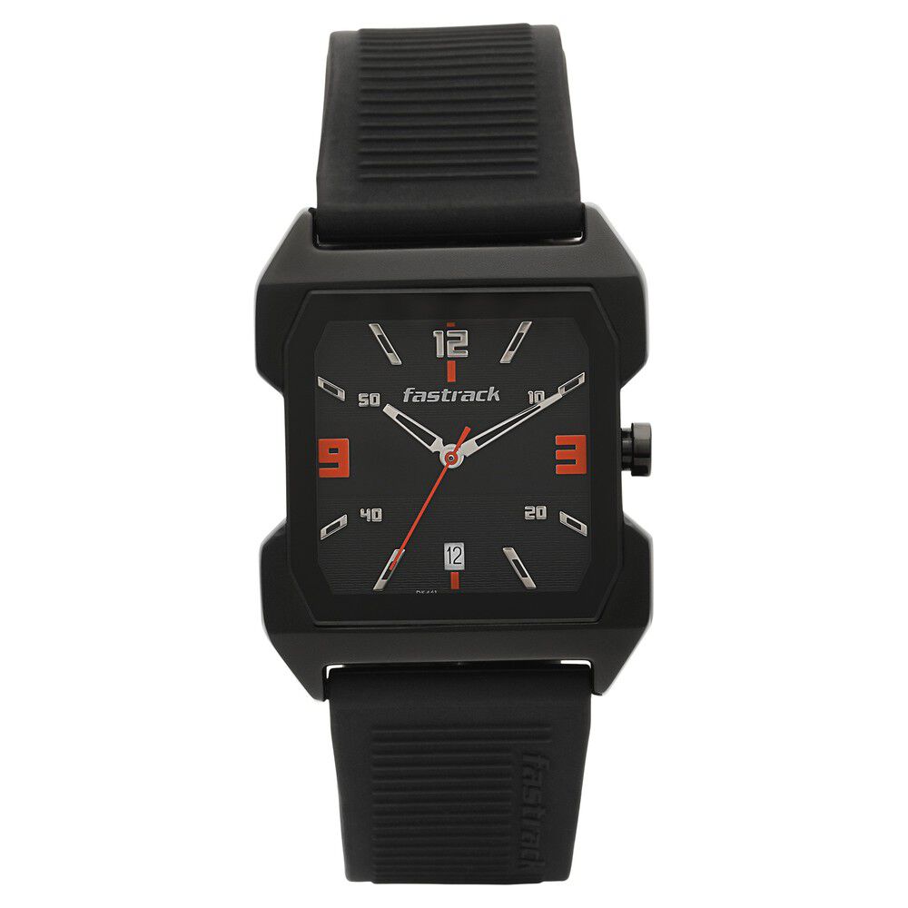 Fastrack Hitlist Quartz Analog with Date Black Dial PU Strap Watch for Guys NS1474NP01