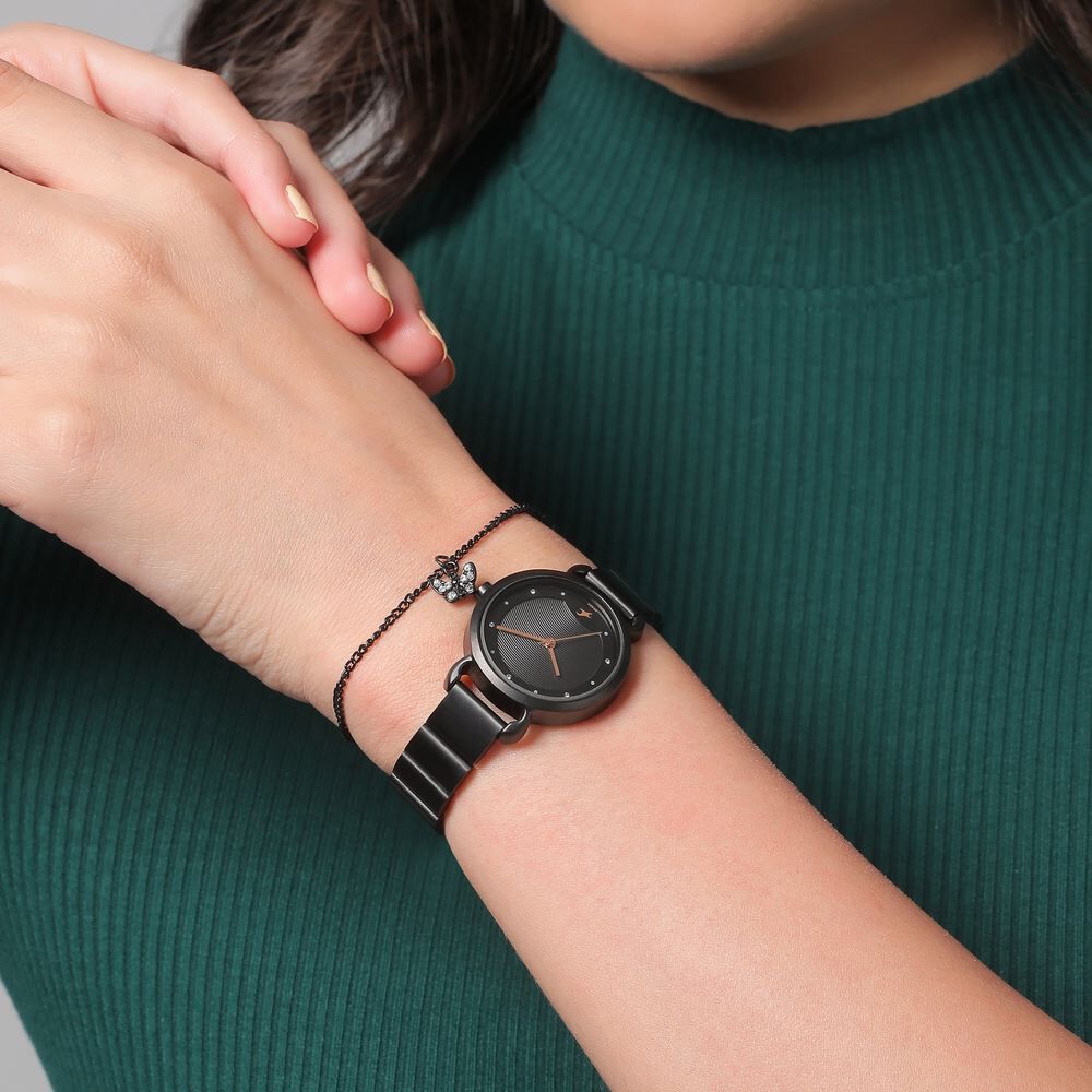 Fastrack Pulse Quartz Analog Black Dial Stainless Steel Strap Watch for Girls 6221NM03F