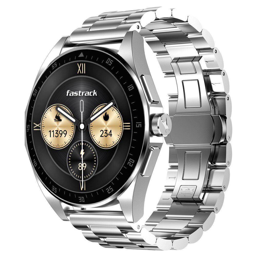 Fastrack Radiant FX1 Luxury Metal Smartwatch with 3.6 cm AMOLED Display, SingleSync BT Calling, Functional Crown - Steel 38123SM01