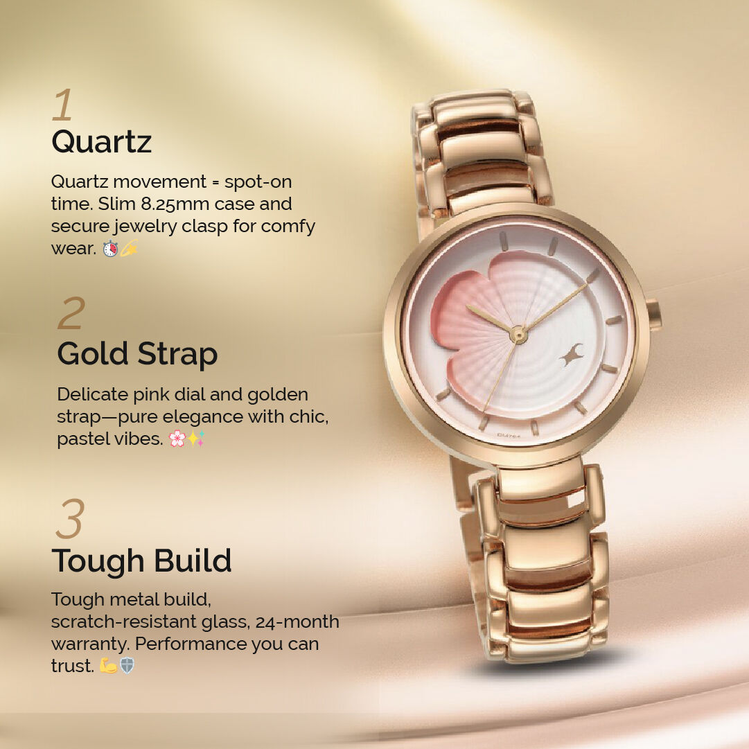Fastrack Uptown Retreat Quartz Analog Pink Dial Metal Strap Watch for Girls NS6277WM01