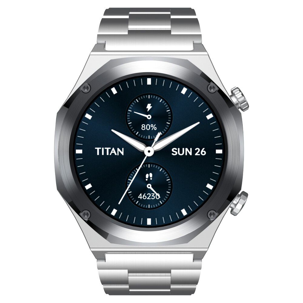 Titan Maestro Premium Metal Smartwatch with All SS construction, SingleSync BT Calling, Functional Crown 90208KM01