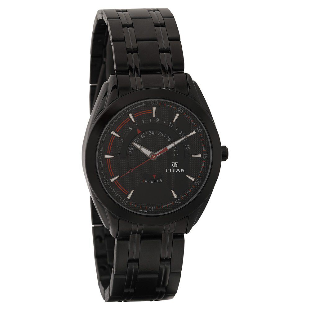 Titan Purple Black Dial Analog with Date Metal Strap Watch for Men-NJ1582NM01