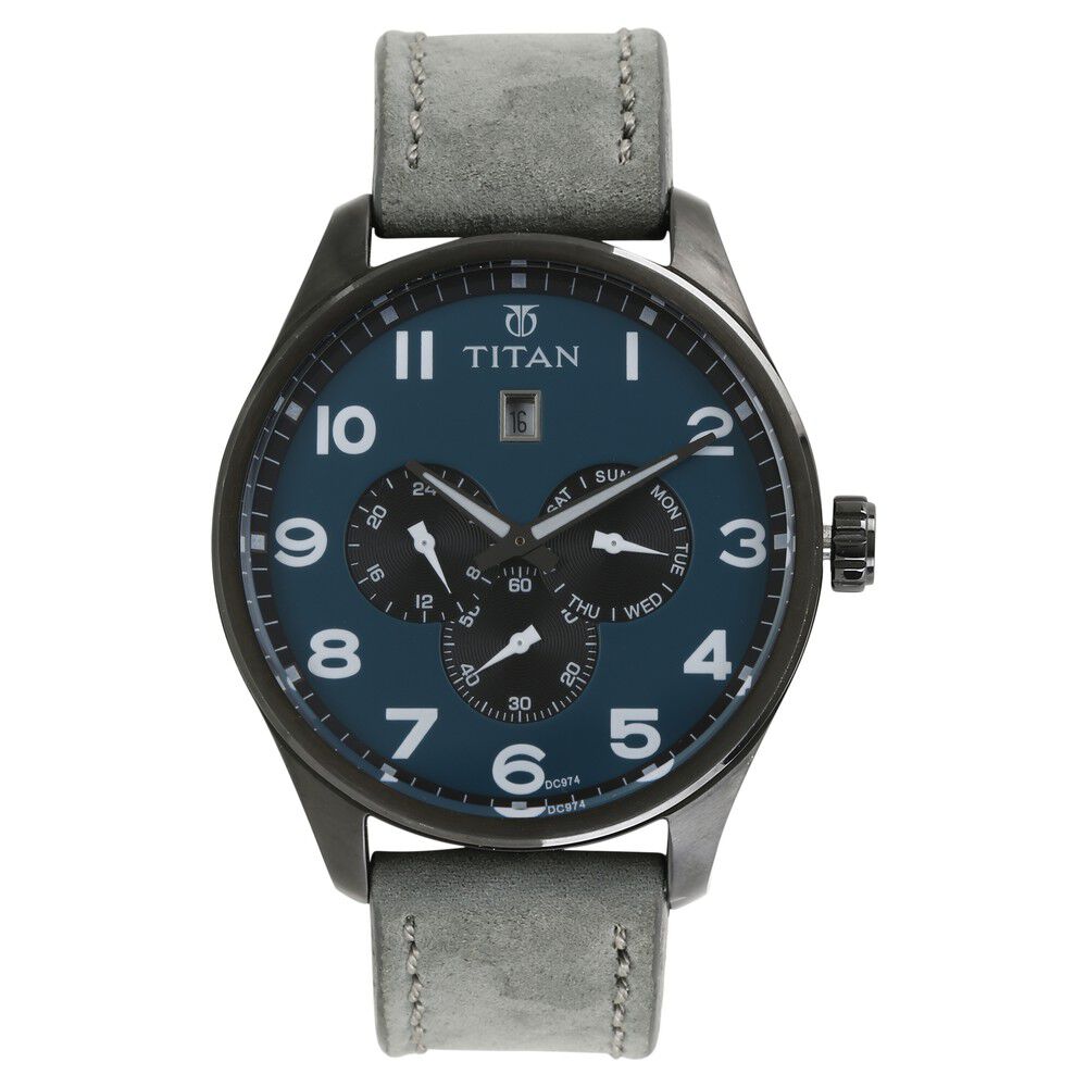 Titan Quartz Analog Blue Dial Leather Strap Watch for Men-9483NL04J