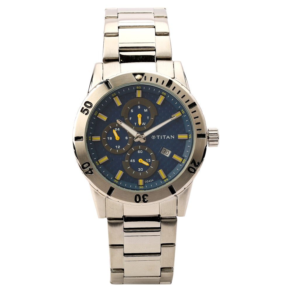 Titan Quartz Analog Blue Dial Stainless Steel Strap Watch for Men-1621SM03J