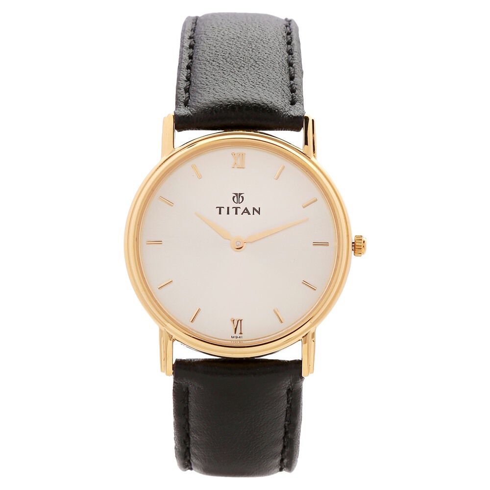 Titan Quartz Analog Champagne Dial Leather Strap Watch for Men-NF1006YL09