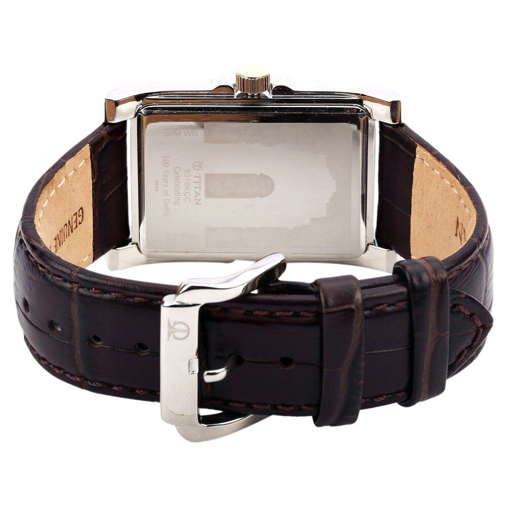 Titan Quartz Analog White Dial Leather Strap Watch for Men-9310KL02