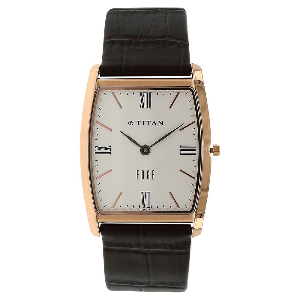 Titan Quartz Analog White Dial Leather Strap Watch for Men-NH1044WL01A