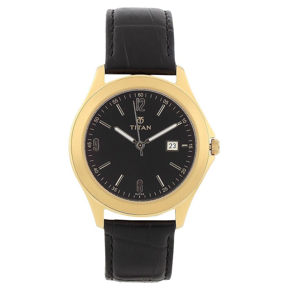 Titan Quartz Analog with Date Black Dial Leather Strap Watch for Men-NC9420YL02