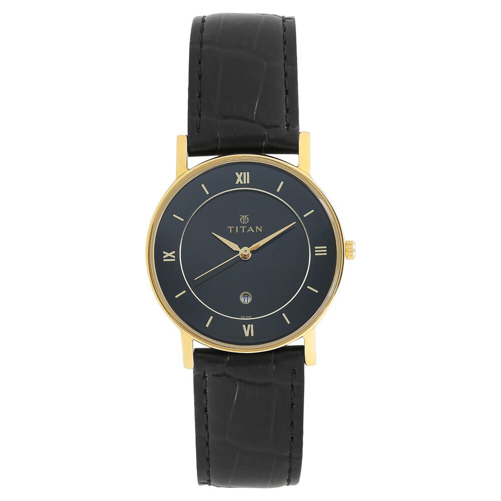 Titan Quartz Analog with Date Black Dial Leather Strap Watch for Men-NJ9162YL02