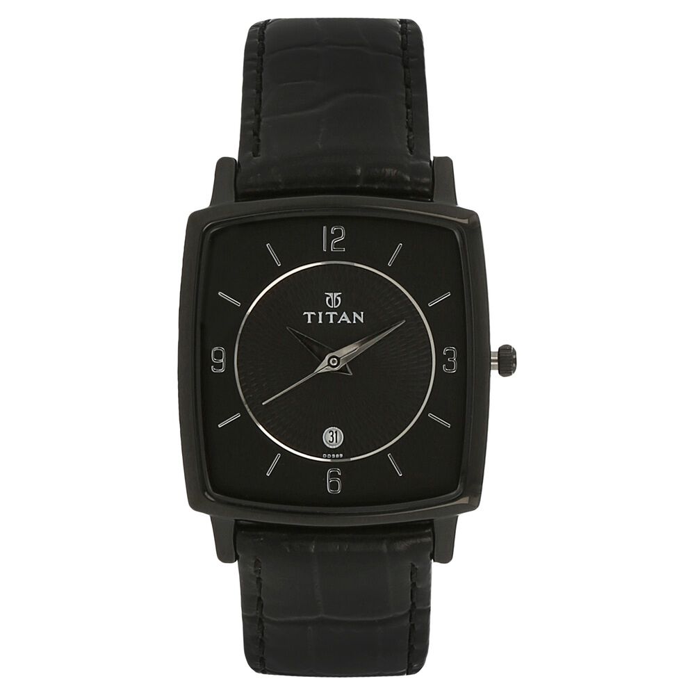 Titan Quartz Analog with Date Black Dial Leather Strap Watch for Men-NK9159NL01