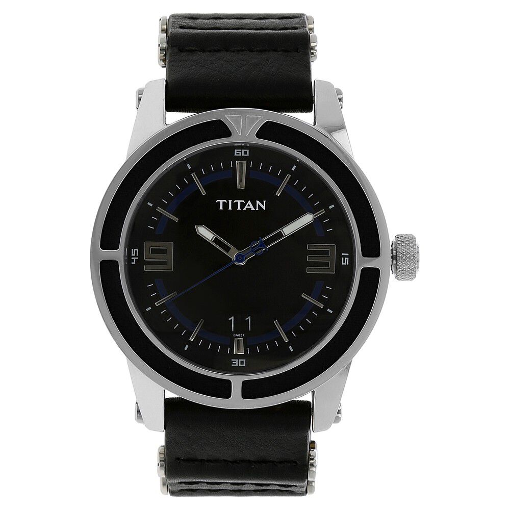 Titan Quartz Analog with Date Black Dial Metal Strap Watch for Men-NB9413SH01