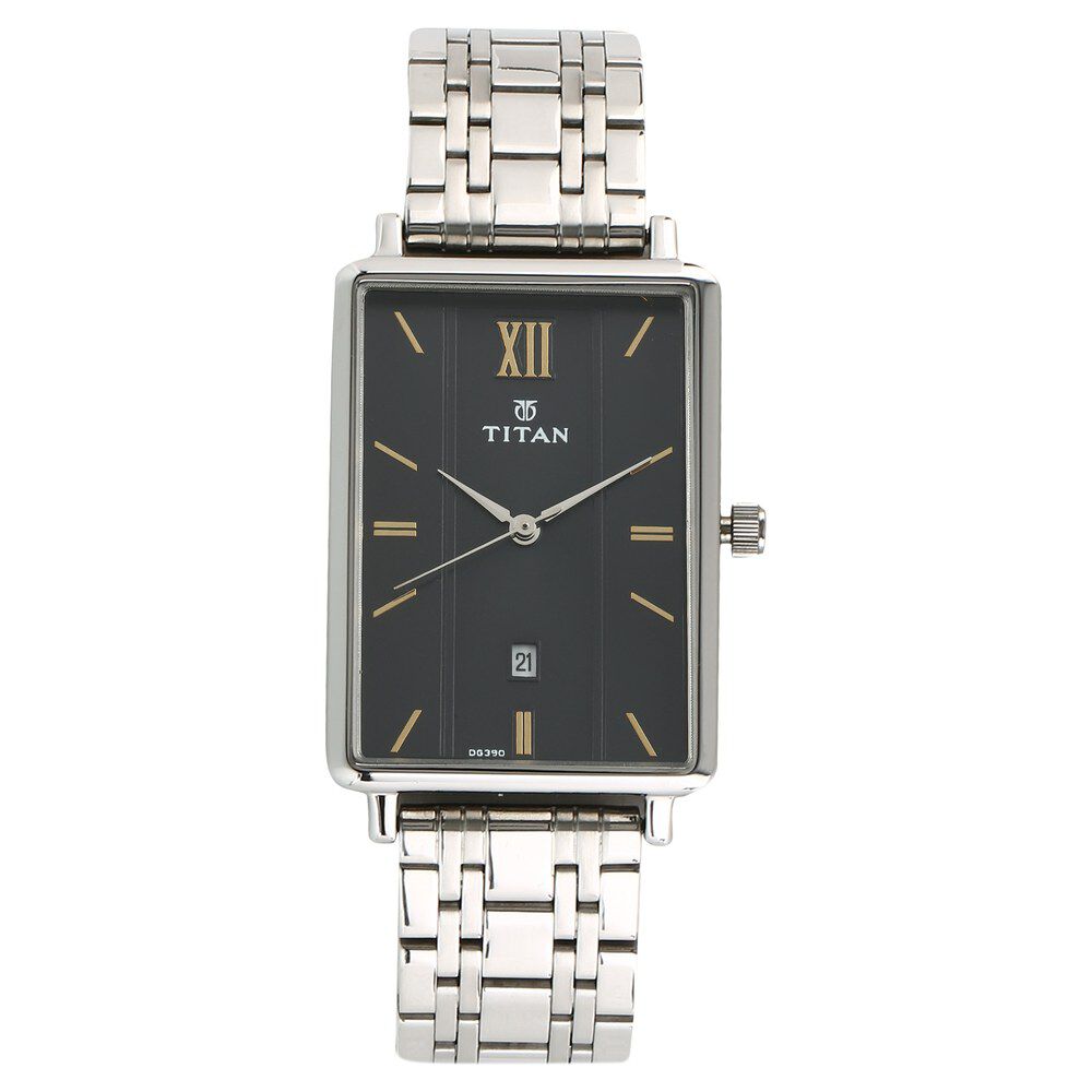 Titan Quartz Analog with Date Black Dial Stainless Steel Strap Watch for Men-NK1738SM02