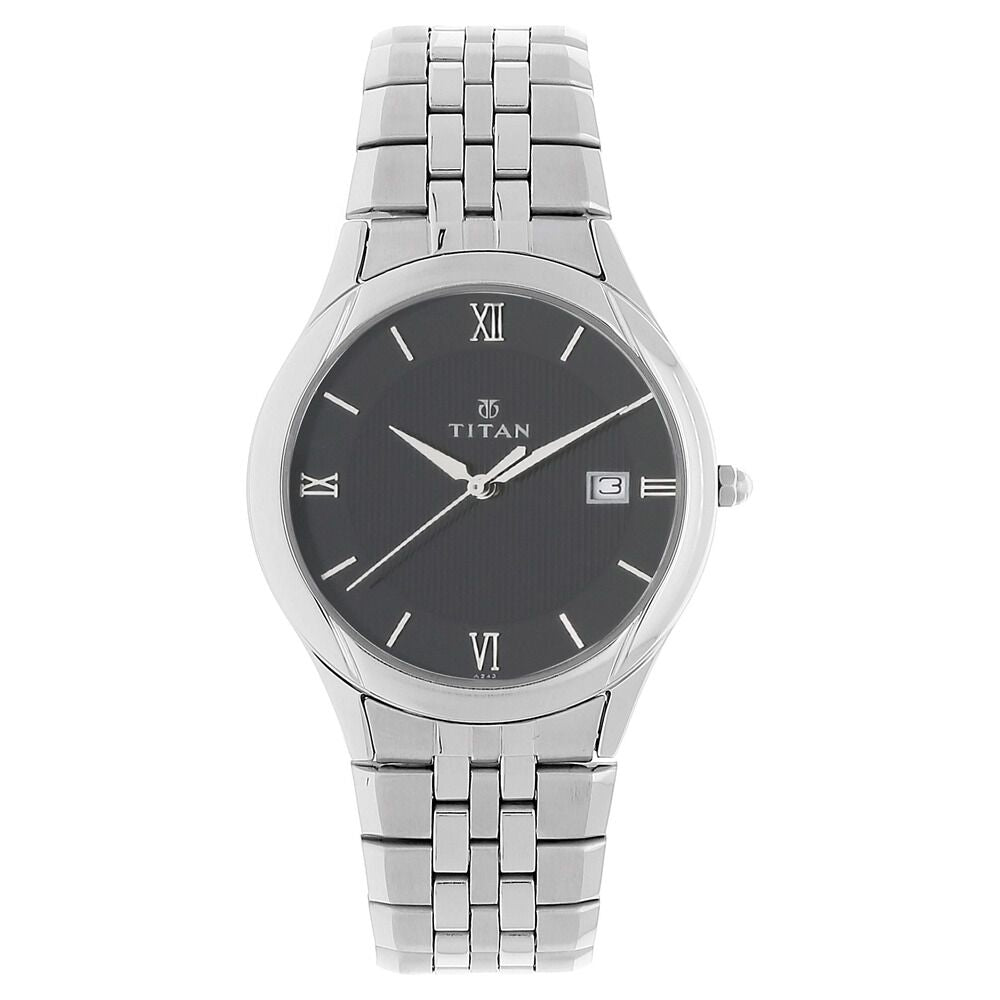 Titan Quartz Analog with Date Black Dial Stainless Steel Strap Watch for Men-NQ1494SM02