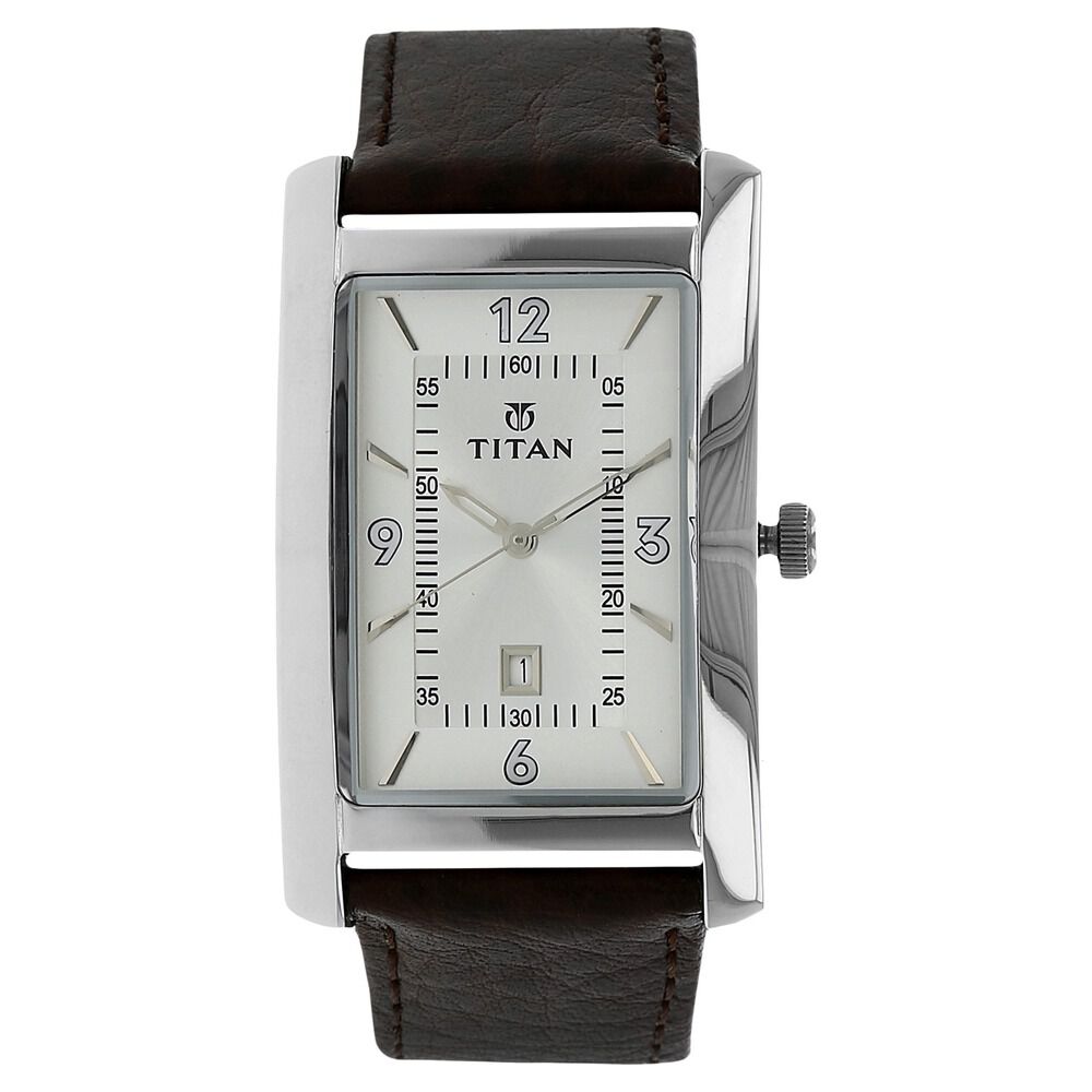 Titan Quartz Analog with Date Silver Dial Leather Strap Watch for Men-NJ9280SL01A