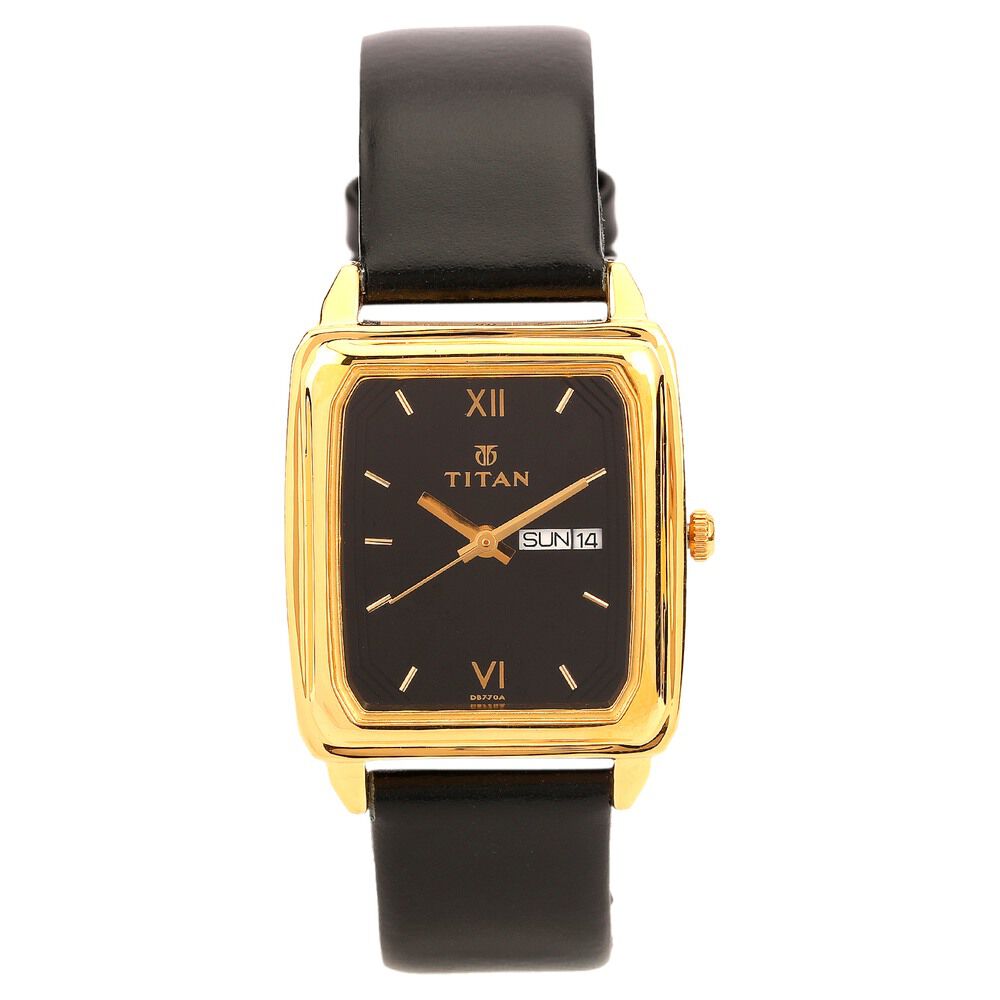 Titan Quartz Analog with Day and Date Black Dial Leather Strap Watch for Men-NE1581YL06