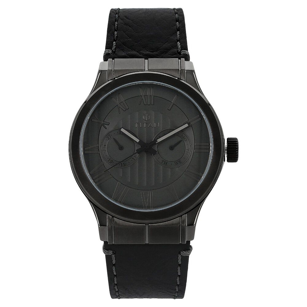 Titan Quartz Analog with Day and Date Grey Dial Leather Strap Watch for Men-90051QL01J