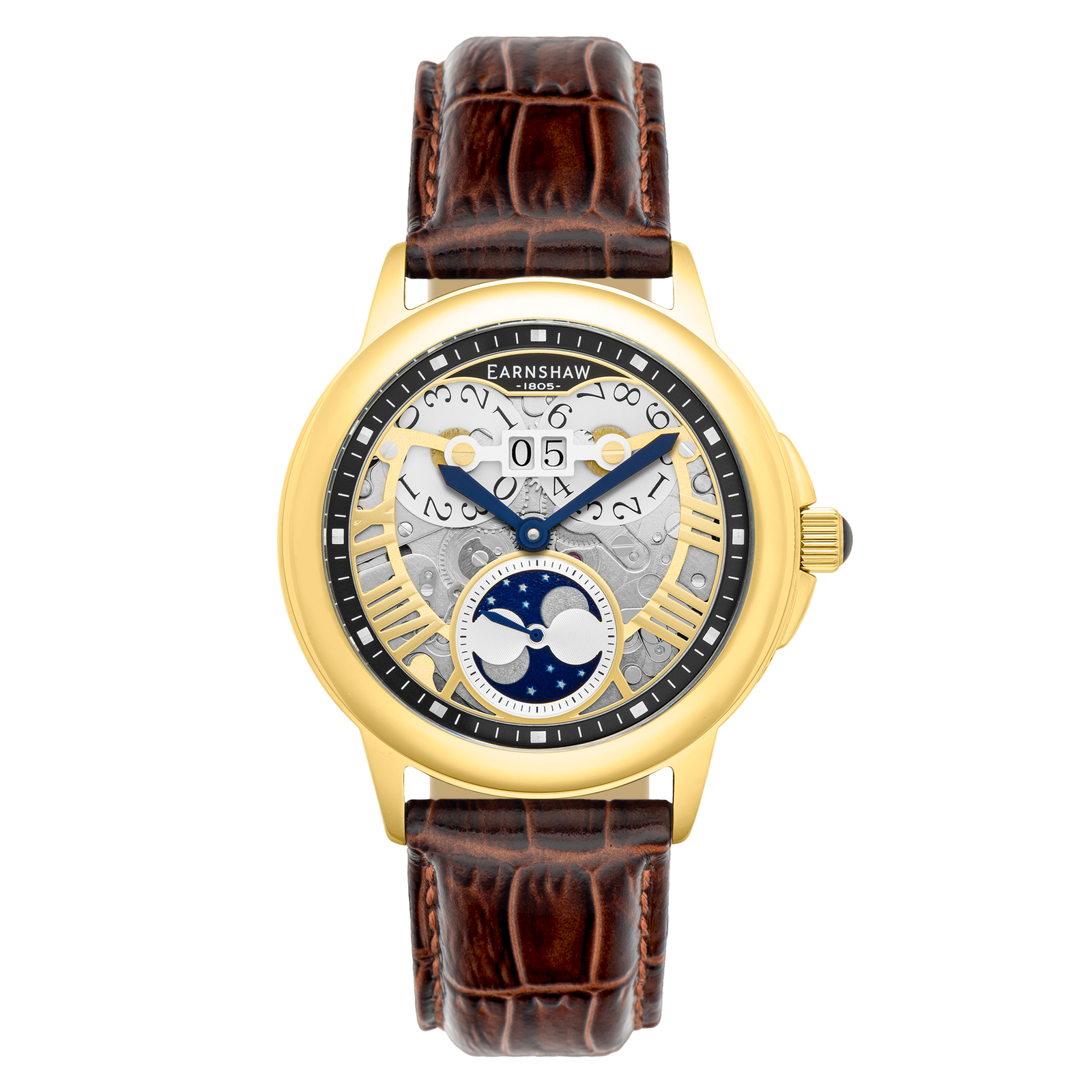 Earnshaw Waterhouse Grand Date Sun Moon Skeleton Automatic Yellow Gold