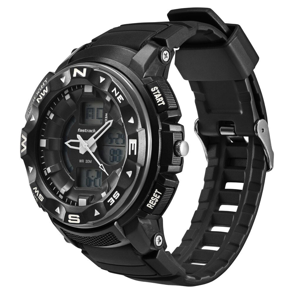 Fastrack AnaDigi Black Dial Plastic Strap Unisex Watch 38076PP01W