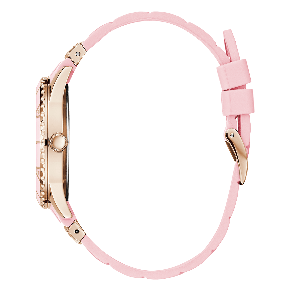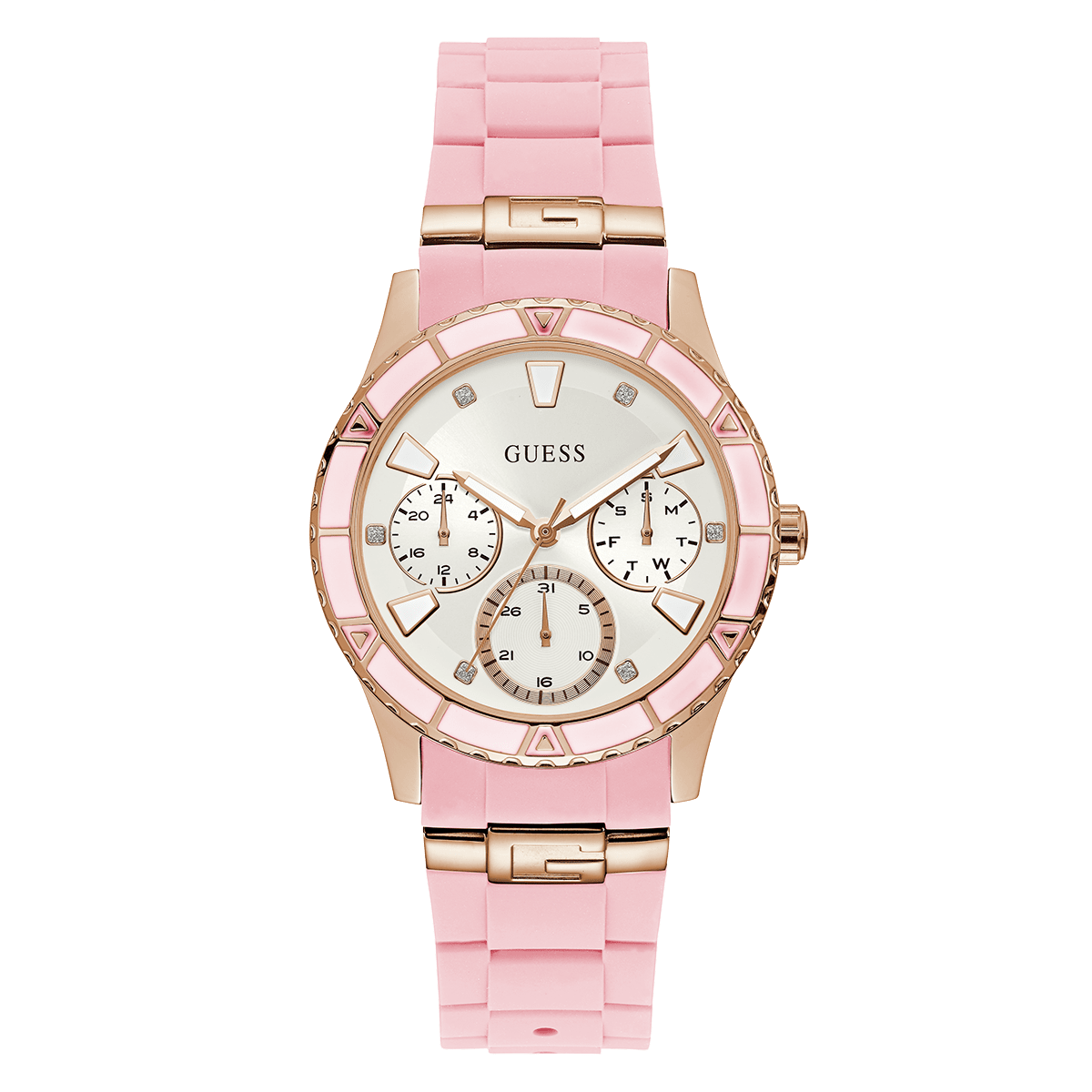 GUESS Ladies Pink Rose Gold Tone Multi-Function Watch
