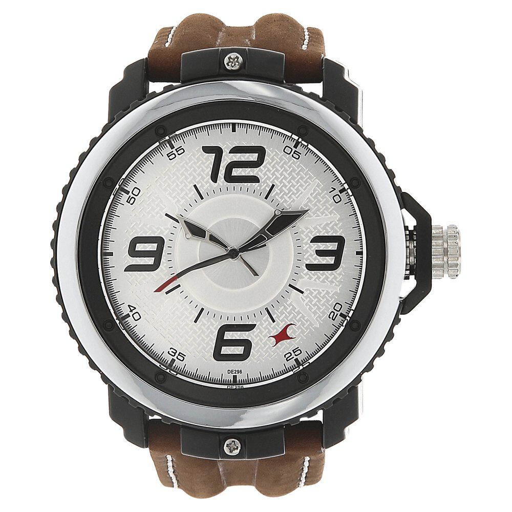 Fastrack Quartz Analog Silver Dial Leather Strap Watch for Guys NS38017PL02