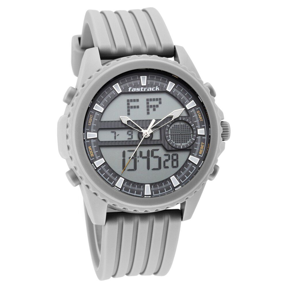 Fastrack Streetwear Quartz Analog Digital Grey Dial PU Strap Watch for Guys NR38064PP02