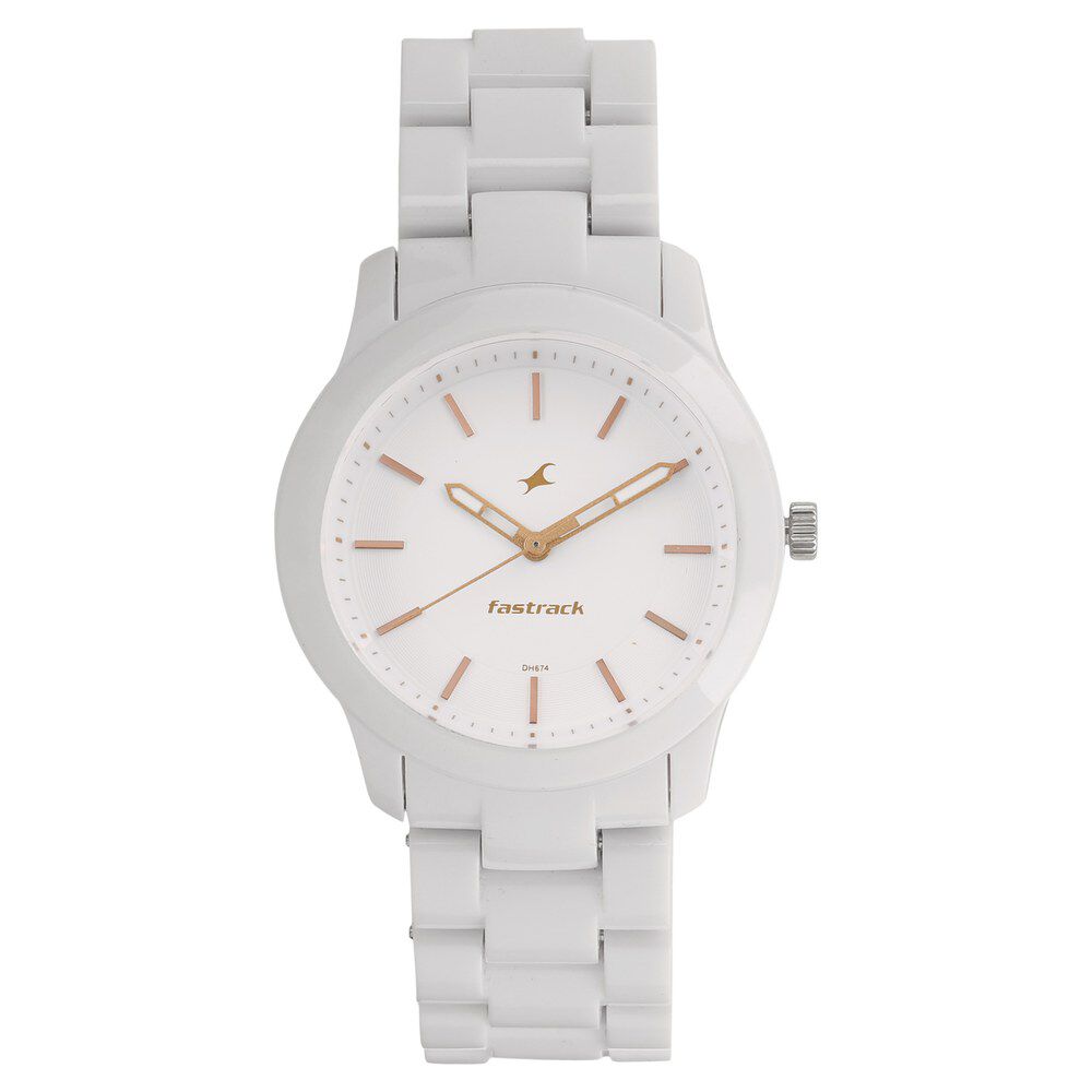 Fastrack Trendies Quartz Analog White Dial Plastic Strap Watch for Girls NS68006PP02
