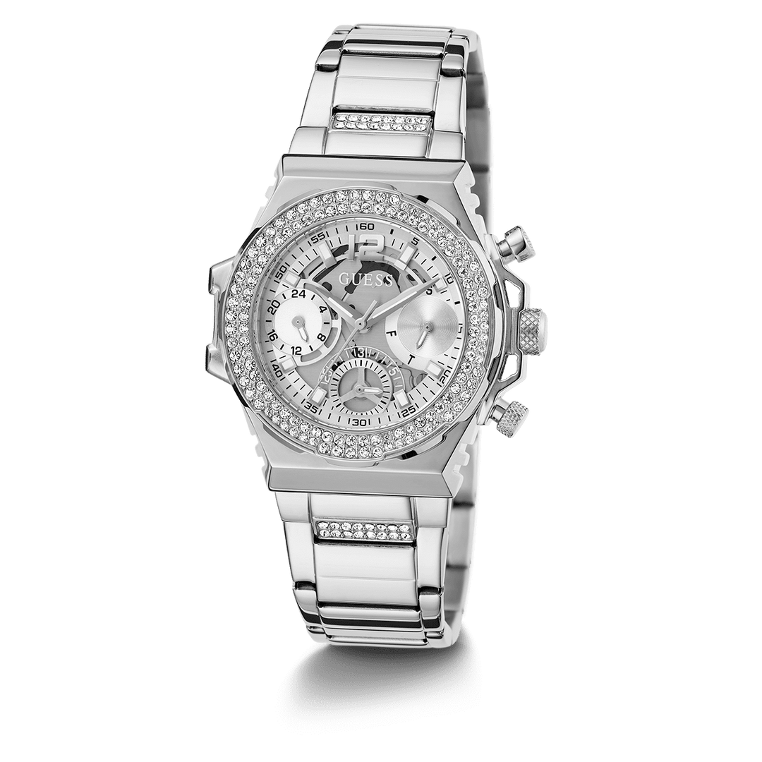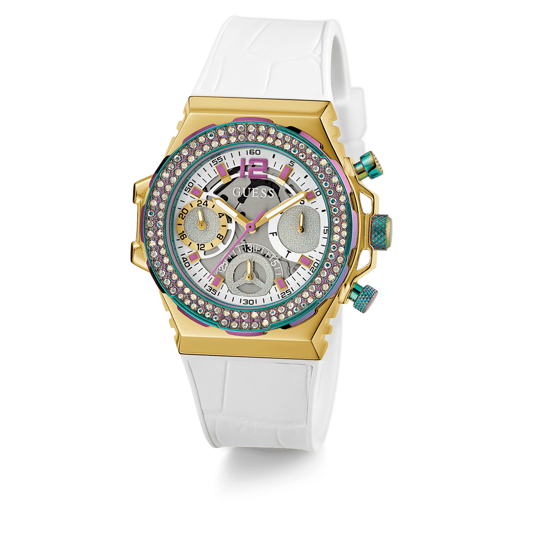 GUESS Ladies White Gold Tone Multi-Function Watch