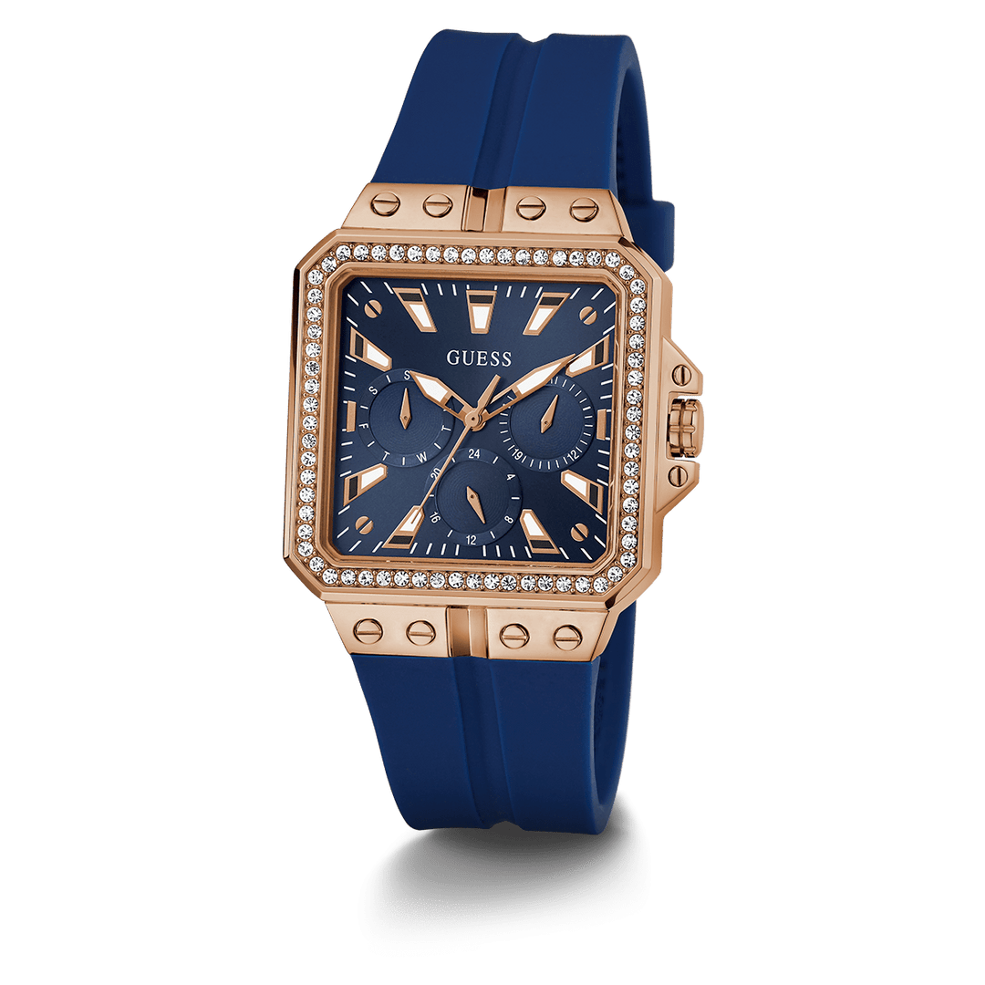 GUESS Ladies Blue Rose Gold Tone Multi-Function Watch