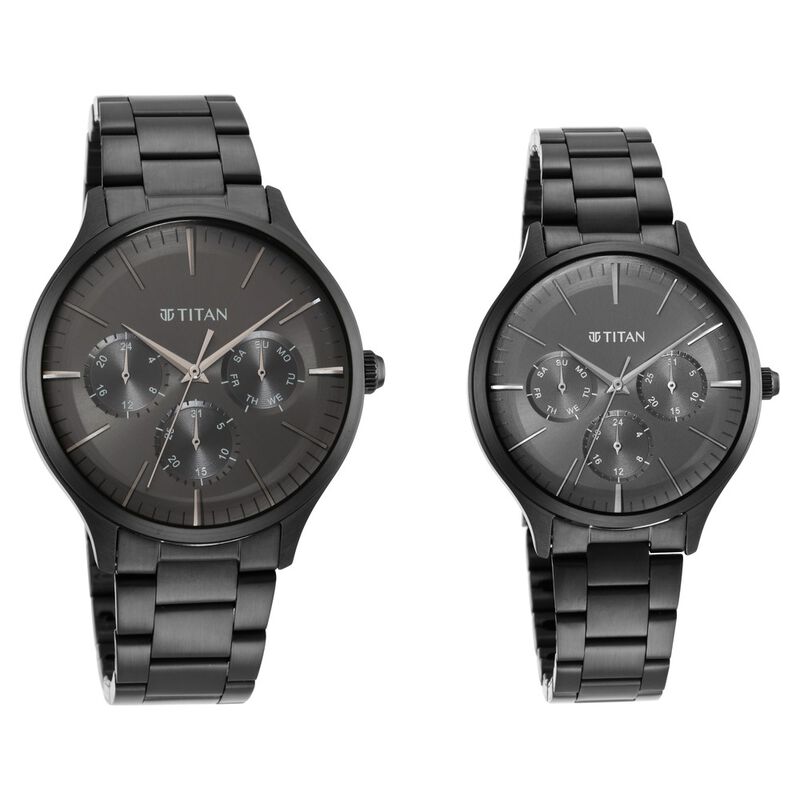 Titan Bandhan Black Dial Quartz Multifunction Stainless Steel Strap Watch For Couple