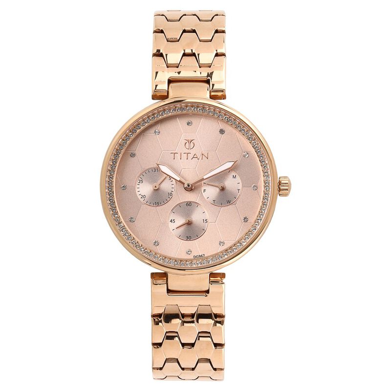 Titan Whimsy Rose Gold Dial Quartz Multifunction Stainless Steel Strap Watch For Women